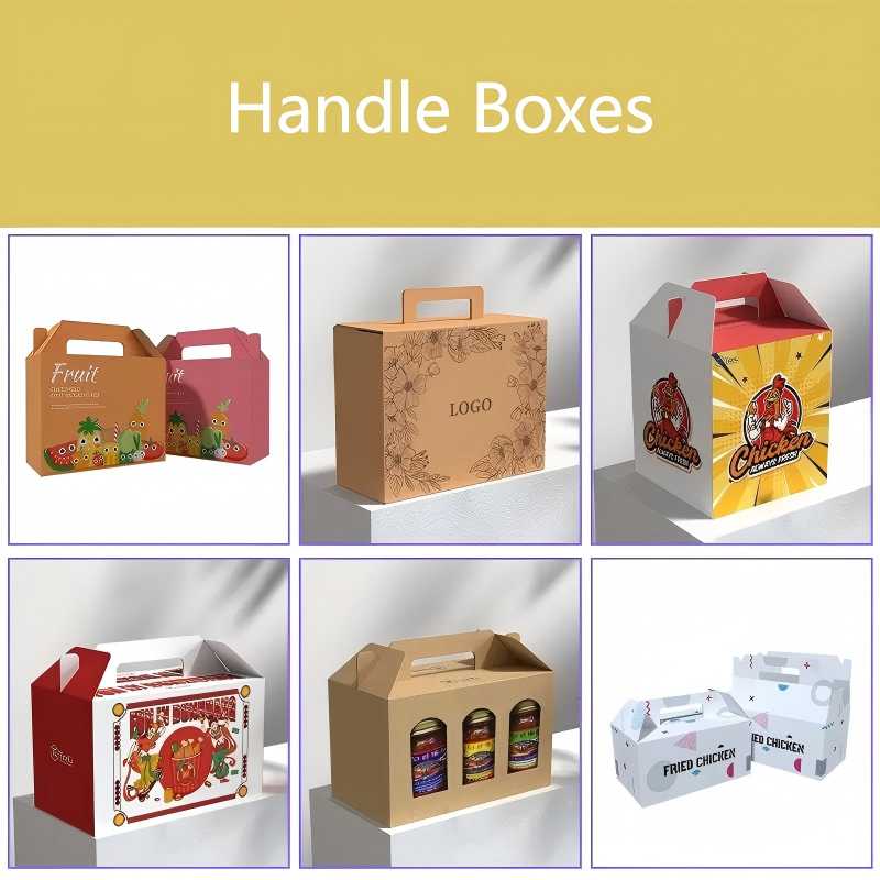Handle boxes feature an integrated handle for easy carrying, combining practicality with stylish packaging.
