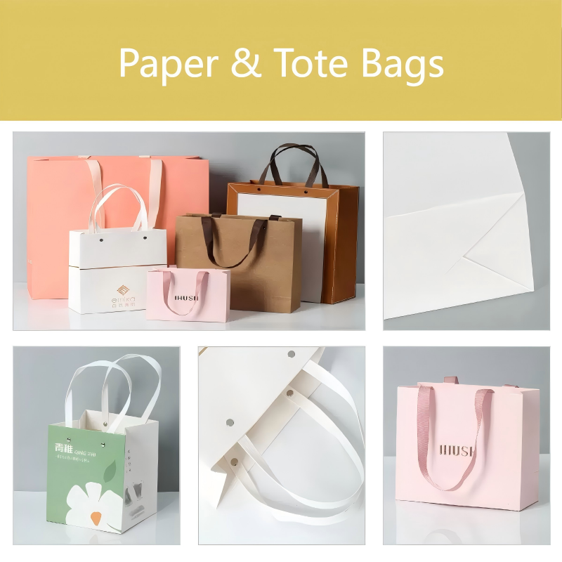 Custom paper and tote bags provide convenient, stylish, and eco-friendly packaging solutions for retail, gift, and promotional products.