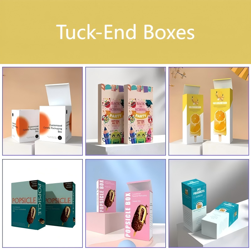 Tuck-end boxes feature convenient tuck-in flaps for easy assembly and secure closure