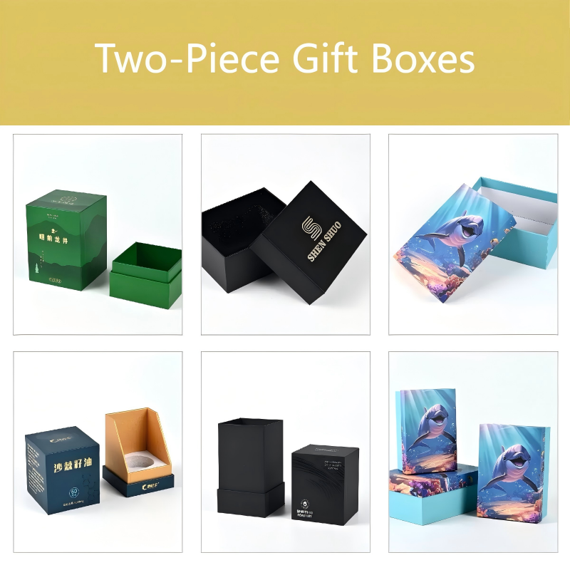 Two-piece gift boxes feature a separate lid and base, offering sturdy construction, elegant presentation, and a premium unboxing experience.