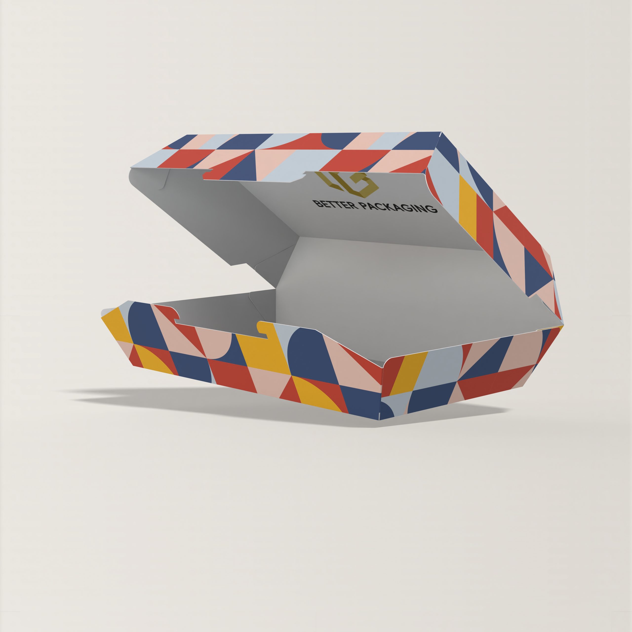 Ideal for restaurants, food trucks, and delivery services, the burger box combines practical functionality with attractive design for modern food packaging.