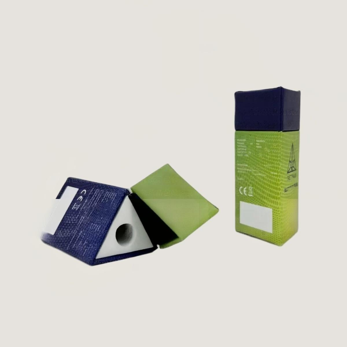Custom inserts (EVA foam, molded trays, or paperboard) keep bottles or vials securely in place. Fully customizable with foil stamping, embossing, spot UV, soft-touch lamination, or textured specialty papers, this triangular box combines elegance, functionality, and durability. Eco-friendly and recyclable materials are available, making it ideal for premium or limited-edition cannabis oil packaging.