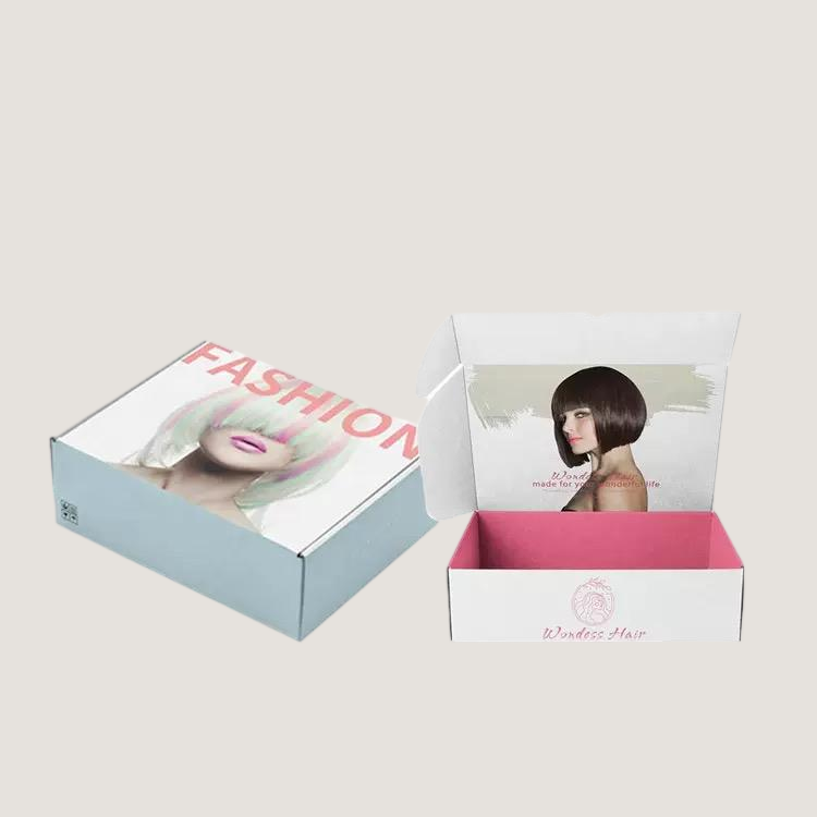 Our wig shipping box is made from durable corrugated cardboard, designed to protect wigs, extensions, and hair bundles during long-distance transportation. The mailer-style structure provides excellent compression strength while remaining lightweight and cost-effective for e-commerce. Custom inserts and tissue wrapping can be added to enhance product presentation and prevent tangling or deformation.